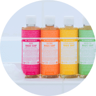 ドクターブロナーの製品は、こだわりのオーガニック原材料を使ったシンプル処方。