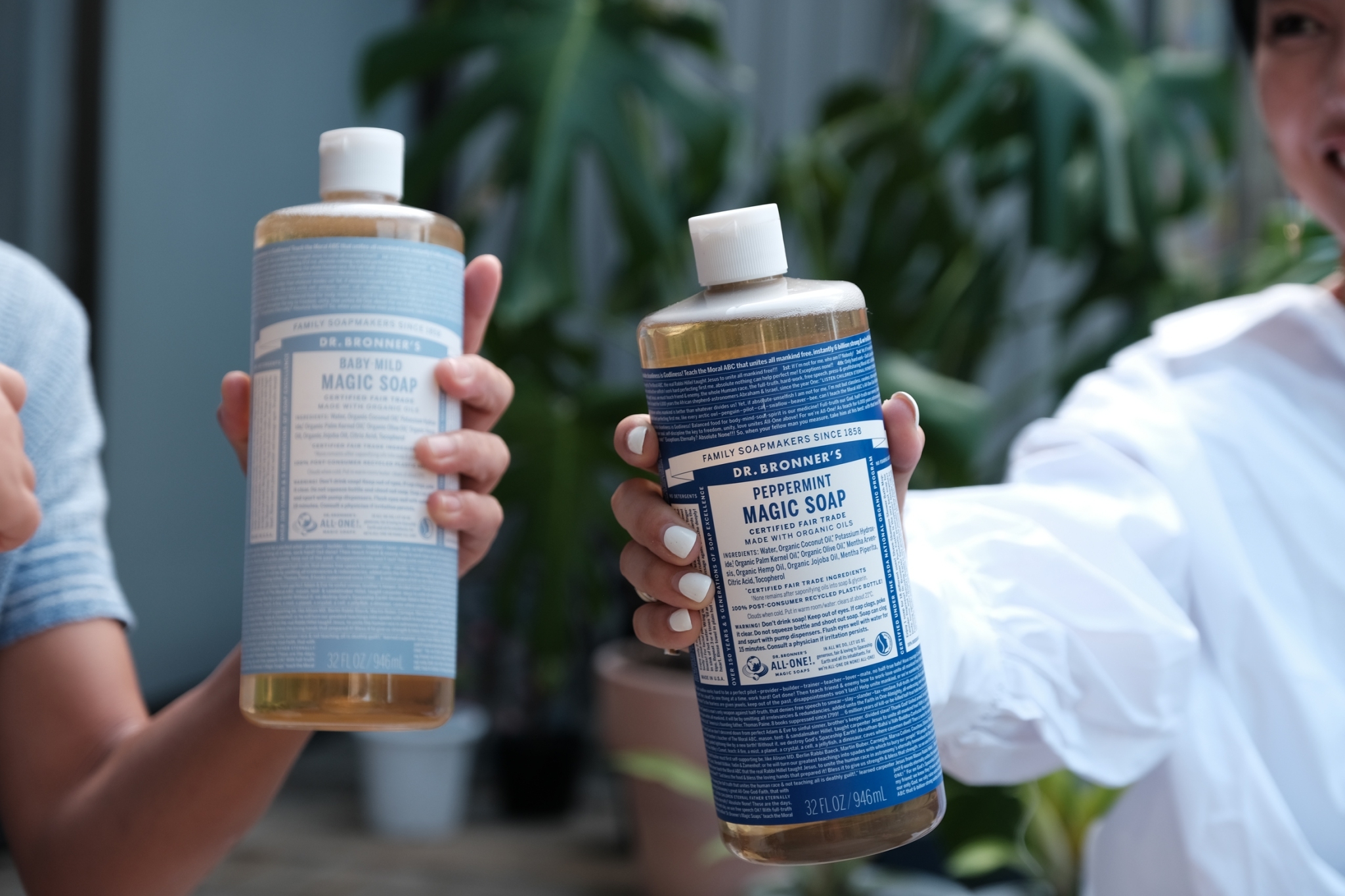 ドクターブロナーも、土地や人々、動物に害を与えない作り方を努力して、土壌を豊かにするために木を植えたりしてるんだよ。マジックソープのボトルもリサイクルペットボトル100%で作られていて、地球の恩恵を受けてできた製品は、またそこに還れるように努めてる。こういった背景に私も感銘を受けるし、アクションしなきゃと思わせてくれる。