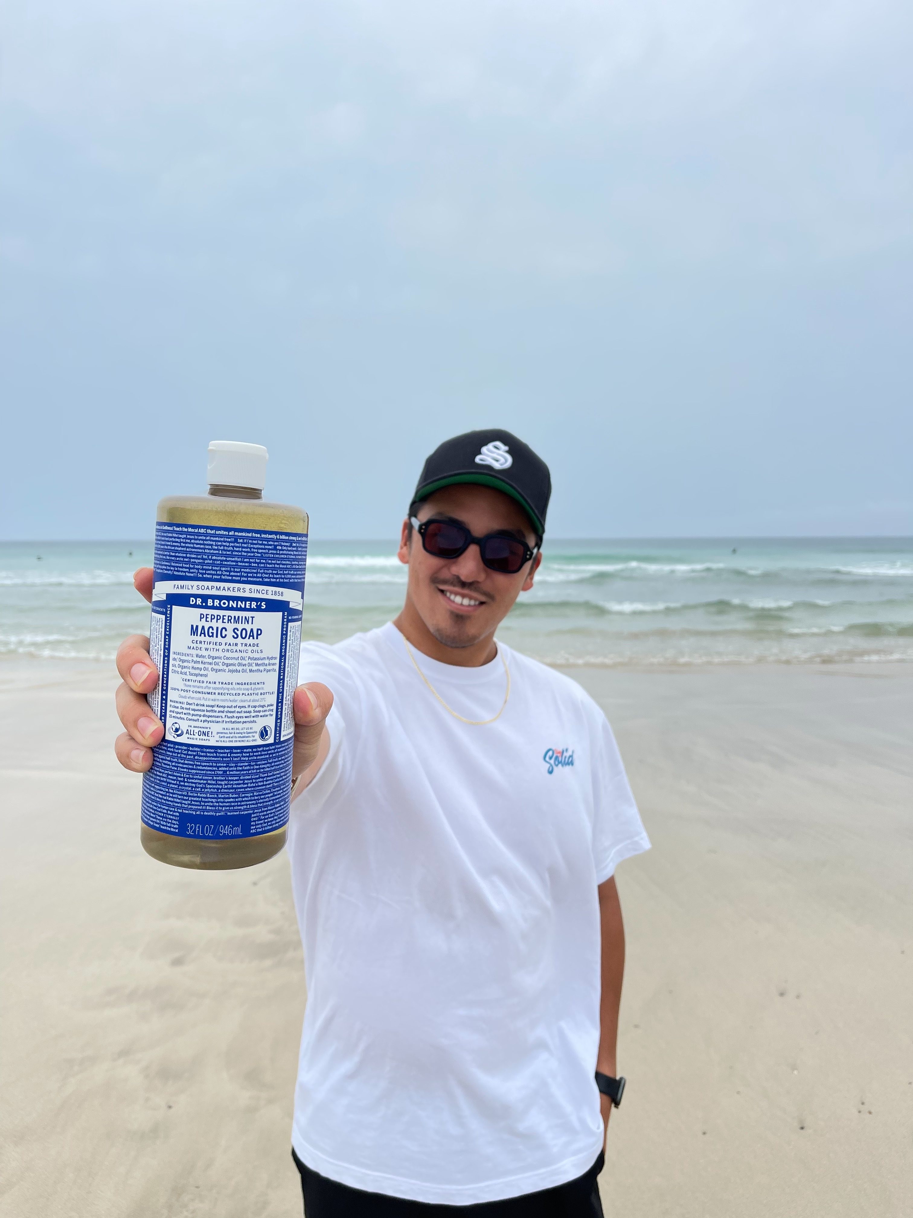 もちろんDR.BRONNER'S は、容器も100%リサイクルプラスチックを使用しています。