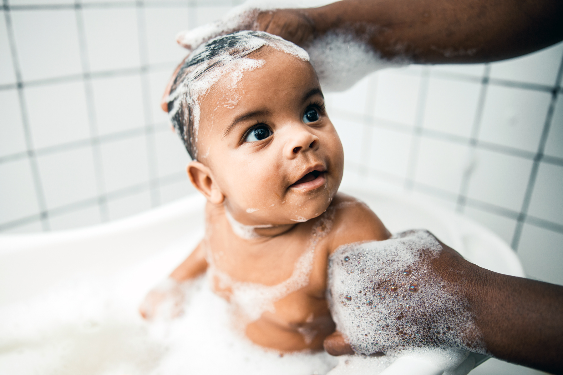 アメリカでテストを実施しており、乳幼児(生後28日以降~23か月)からご使用いただけます。肌に合わないこともあるため、不安がある場合は腕の内側など目立たないところに塗布をしてパッチテストを行い、トラブルや異常がないか確認の上、ご使用ください。また、 天然の石けんであるため、Tear Free(涙が出ない処方の製品)ではありませんので、赤ちゃんの目に入らないように十分注意してください。