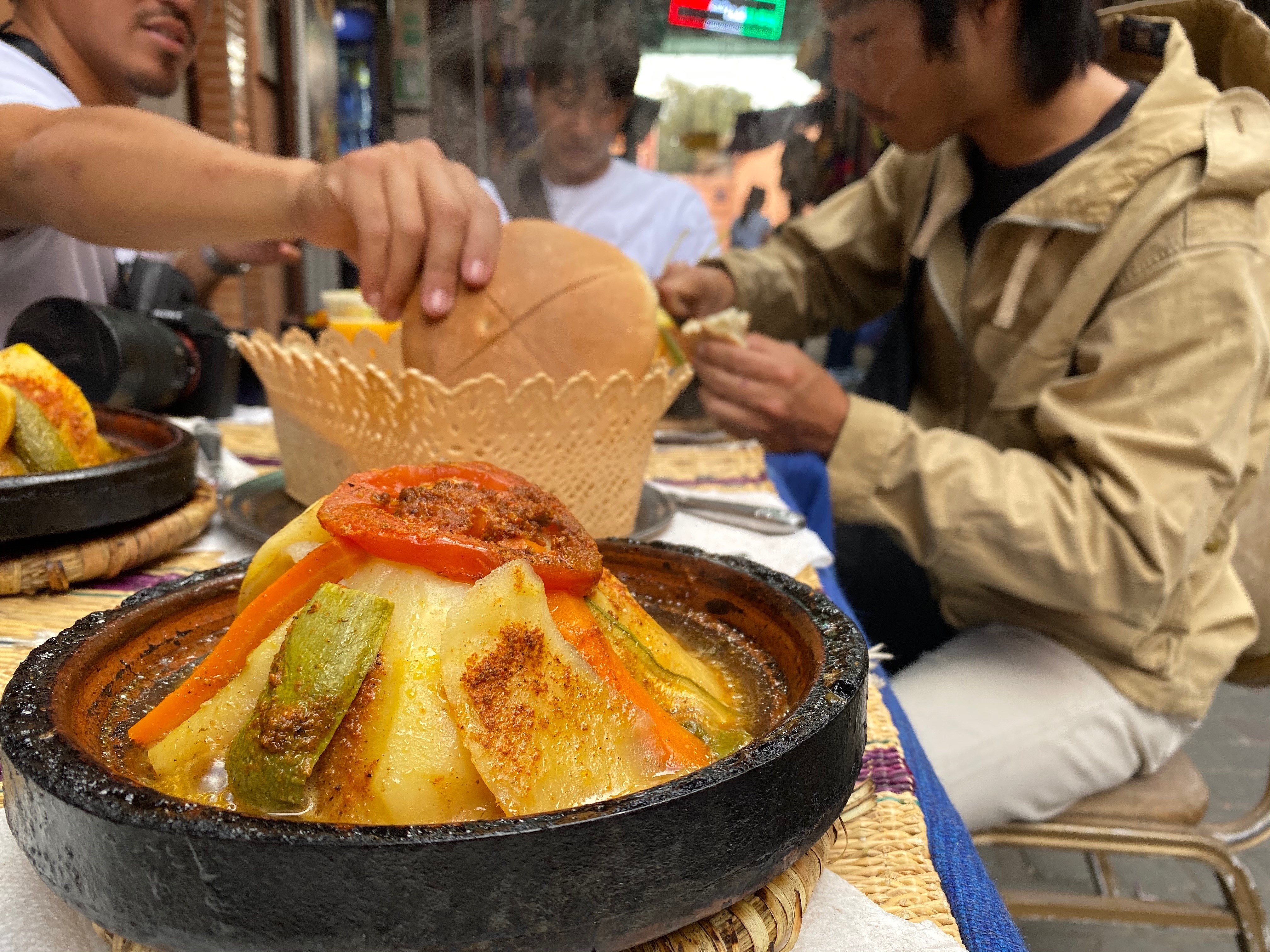 初日巨大な迷路の様な街マラケシュを散策し、道に迷いつつも11日間のモロッコ滞在でベストとなるタジン鍋を食べられた場所。