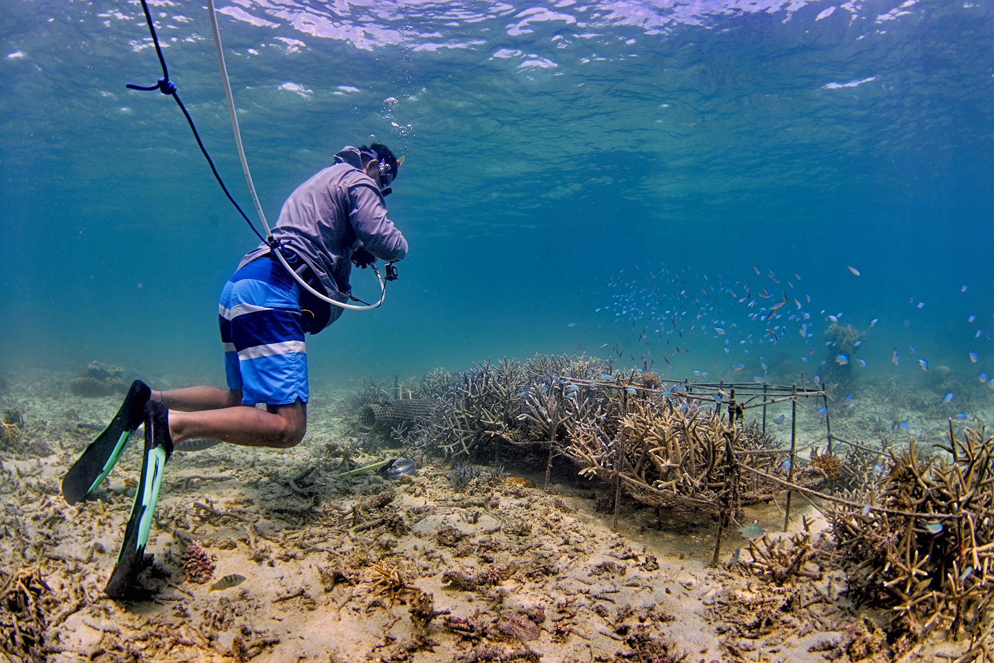 「まず海流を調べる器械はもちろん、航空写真も使って、多角的に潮の流れを計測、想定します。そしてその結果に基づいて、潮の流れが強い上手から、流れが弱くなる下手へ向かってサンゴを受け止めるワイヤーやネットなどを張り巡らせます。まだ調査段階なので詳しい情報はお伝えできませんが、いずれ、その手法を全て公開しようと思っています。