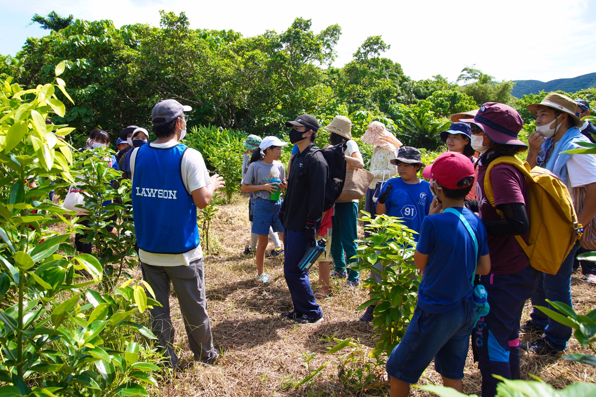 「私たちには、サンゴ礁を守るために4つの軸があります。一つはこれまでお話しした海のこと、そして陸のこと、さらに伝えること、そして技術開発です。この中の2つ目に挙げた陸のことについて。沖縄は島の面積が狭いので山や畑と海の距離が近いんですね、それで雨などが降ると山からの土砂が海へ流れ込んでしまう。それによってサンゴが死んでしまうので、土砂流出を防ぐため、許可を得て、木々がなくなった場所を森に戻す活動も同時にしています。
