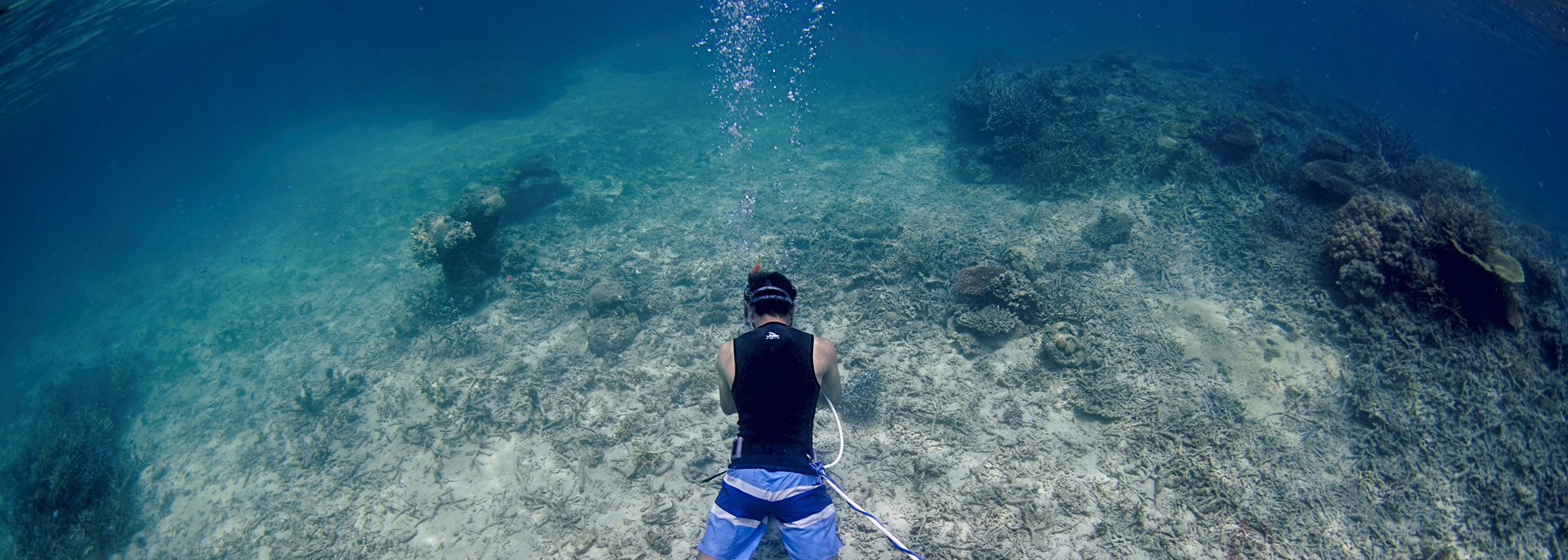何よりうれしいのが、海の中をじっくりと眺めていられること。苦しい思いをしながら何十回も素潜りを繰り返すと、疲れで思考も曖昧になりがちでしたが、水中での滞在時間が長くなり新たな発見や考察につながっています。このワイヤーなども新たに調達できたので、サンゴの集積がこれからどうなるか楽しみです」