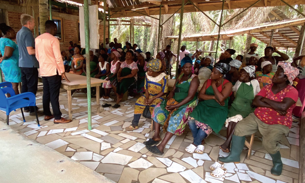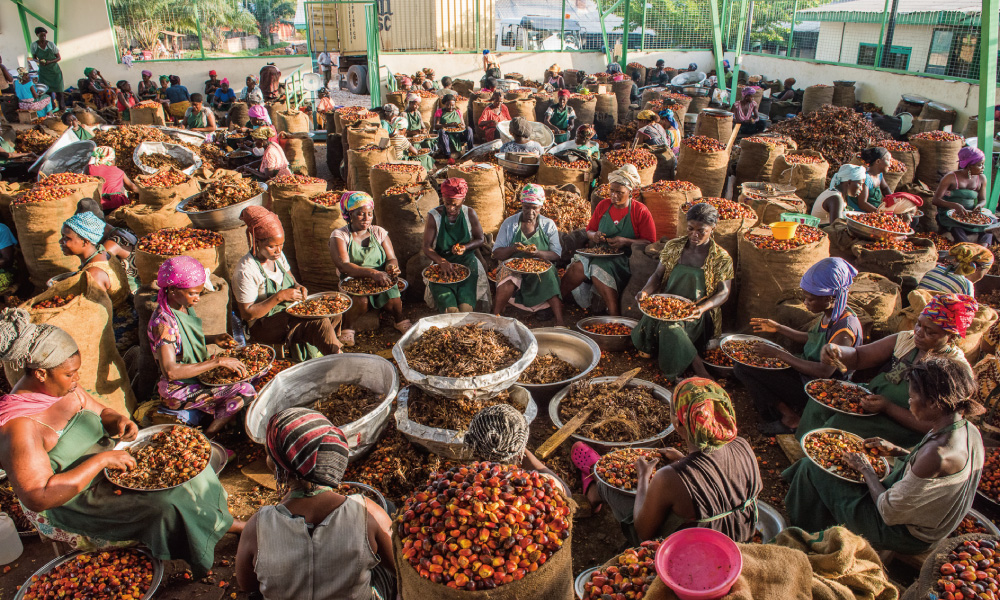 「ガーナのセレンディパームでのプロジェクトについて。ここでは2009年からプロジェクトが始動したのですが、現在350人の方が現地の働きながら、700もの小規模農家の方々に関わってもらっており、リジェネラティブ・オーガニックも採用しながら会社としても成長しています。ここでの業務の中に、手作業でアブラヤシを選定したり、実を洗浄する工程があるのですが、そこに地域の女性の方々を積極的に雇用しています。」