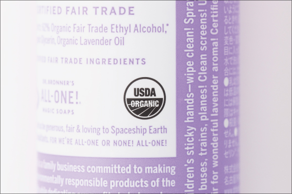 ![]() | 第三者機関からの評価を認証マークで ドクターブロナーは真のオーガニック製品であることにこだわっています。そのために、可能な限りオーガニック認証を取得したオーガニック原材料を使用、製品自体にもオーガニック認証を取得しています。第三者機関の審査を通じて獲得する認証マークは、私たちの製品が生態学的および社会的持続可能性のための高い基準を満たすことを保証しています。オーガニックの厳格さだけでなく、公平性、透明性ともに一定の基準を満たすことができるよう、世界中の様々な認定・認証マークを多数取得しています。 認証マークについて |