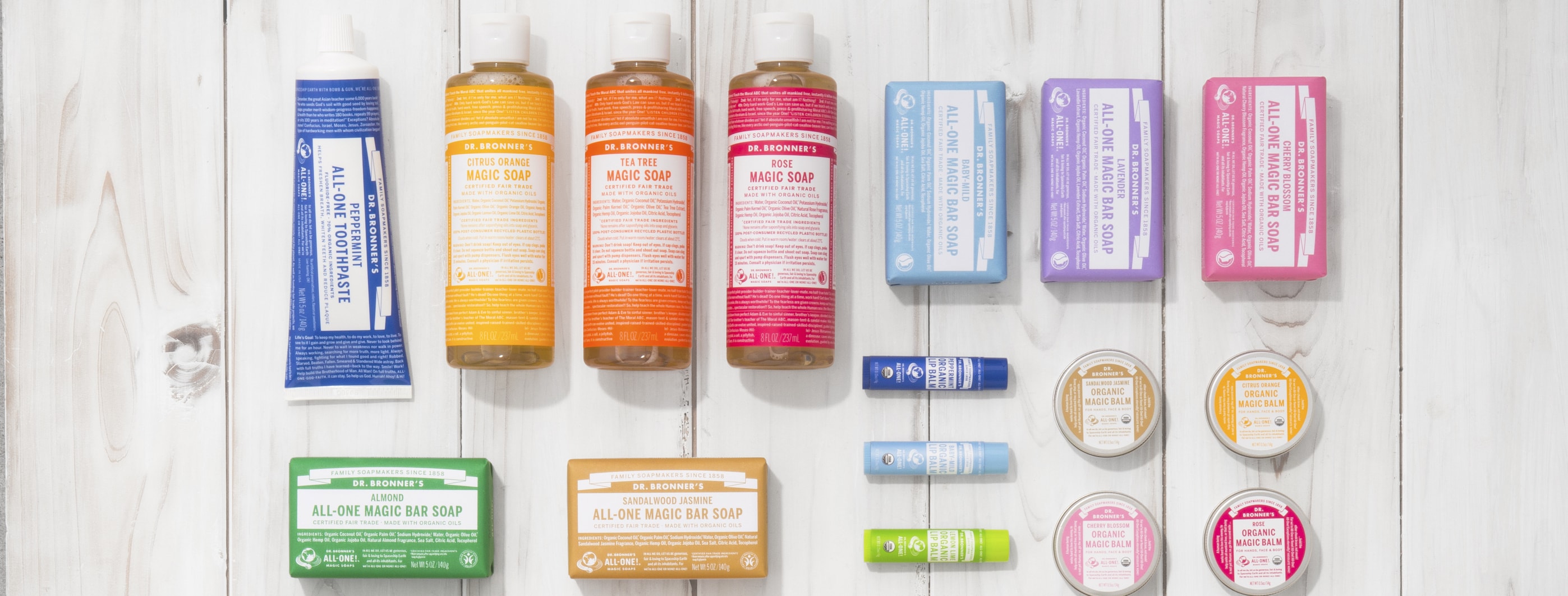 2019年4月1日よりドクターブロナーの日本正規代理店が株式会社ネイチャーズウェイに変更となりました。併せて、同日より日本での取扱商品、パッケージ及び一部商品の容量・価格が変更となります。ご愛顧いただいている皆さまには大変ご迷惑をおかけしますが、何卒ご理解いただけますと幸いです。今後ともドクターブロナーをよろしくお願いいたします。