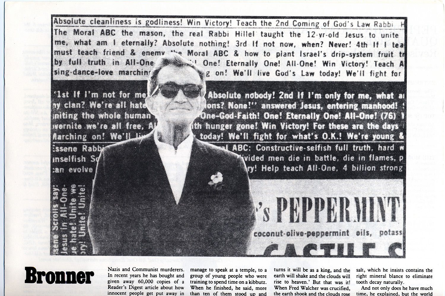 この哲学は、第二次世界大戦のホロコーストで家族を失った創設者エマニュエル・ブロナーが経験した悲痛な出来事から生まれました。