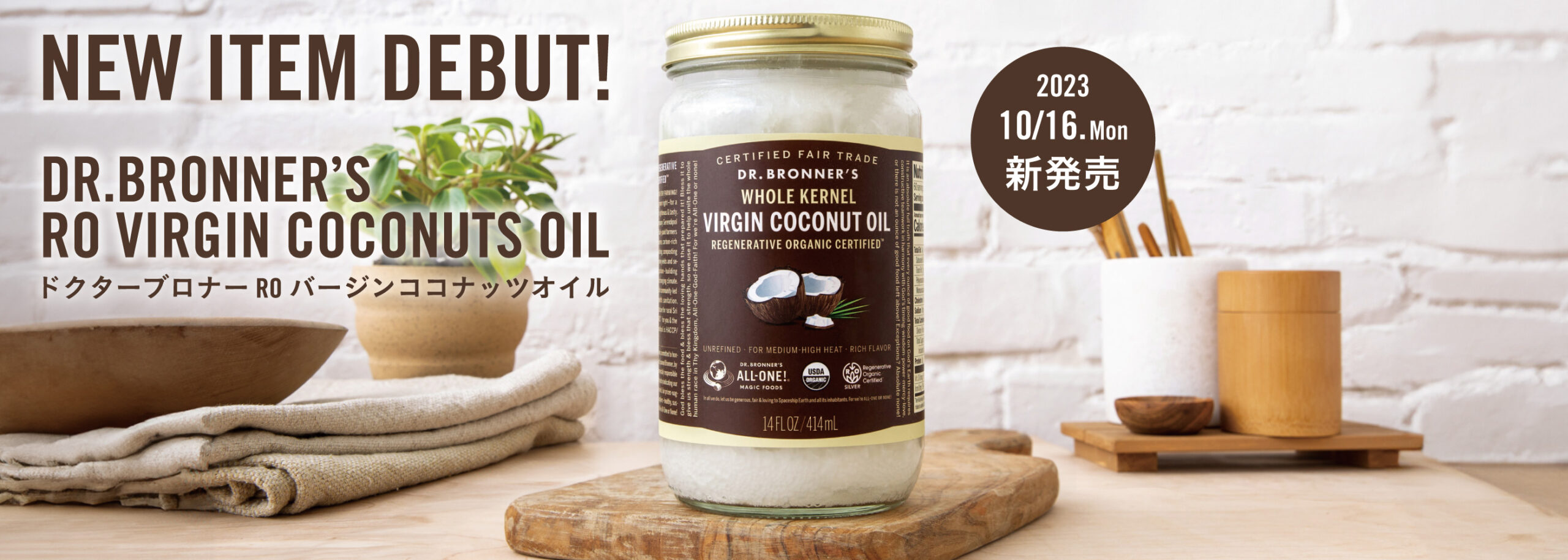 ドクターブロナーは、2023年10月16日(月)に、公式オンラインストア限定で「ドクターブロナー リジェネラティブ・オーガニック(RO) バージンココナッツオイル」を新発売いたします。