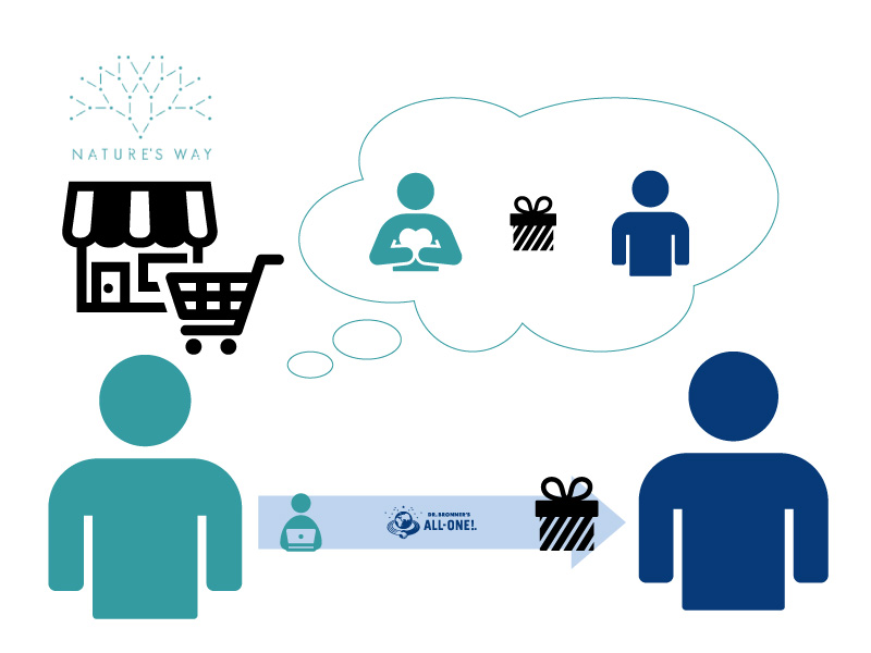 ドクターブロナーの公式オンラインストア「ネイチャーズウェイ オンライン」でドクターブロナー製品をご購入いただいた方がプレゼントを贈りたい方に、ドクターブロナーからプレゼントをお送りいたします。