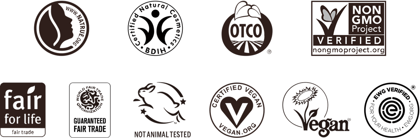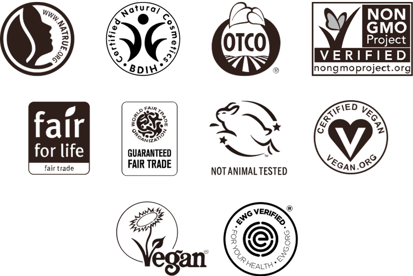 ドクターブロナーは、1948年の創業以来、全ての製品がオーガニックであることにこだわりを持ち続けています。お客さまにとってわかりやすく、安心して製品を選ぶことができるよう、ドクターブロナーは品質・保管・廃棄物管理・動物実験の禁止など、安心・安全・環境保護に関する厳しいチェック項目をクリアした製品にのみに与えられる、認定・認証マークを取得しています。