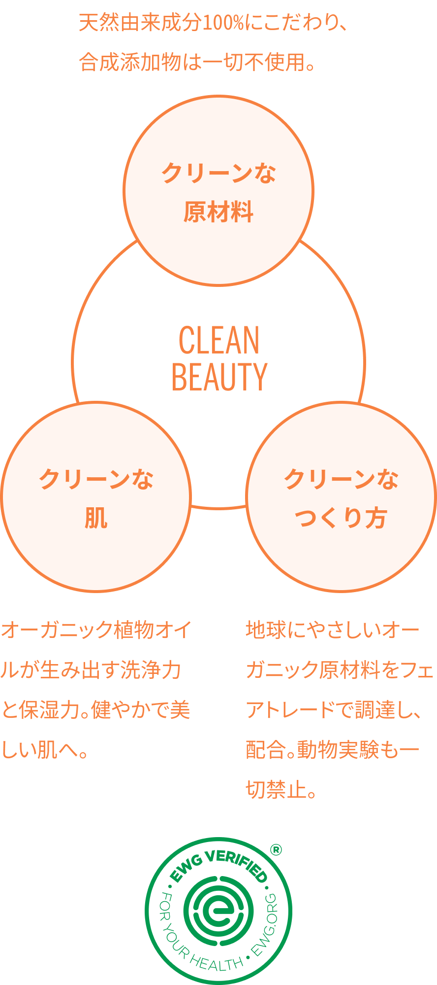 合成添加物等を一切含まず、肌に要らないものを残さない使用感、そして使う人にも